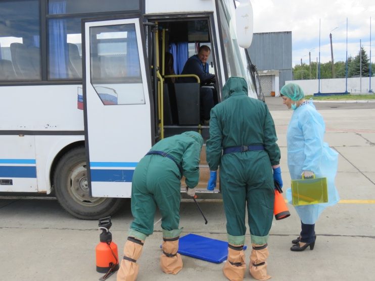 Продемонстрирована работа группы санитарно-эпидемиологической разведки ФБУЗ «Центр гигиены и эпидемиологии в Брянской области», в том числе проведение дезинфекции, использование средств индивидуальной защиты, соблюдение режима передвижения, поточности условно инфицированных лиц и объектов.