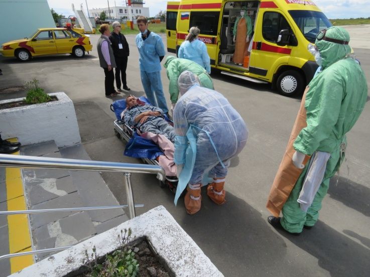 В ходе учений отработаны практические навыки проведения профилактических, санитарно-противоэпидемических мероприятий при возможном выявлении больного на воздушном судне, направлении на госпитализацию больного и контактных лиц.